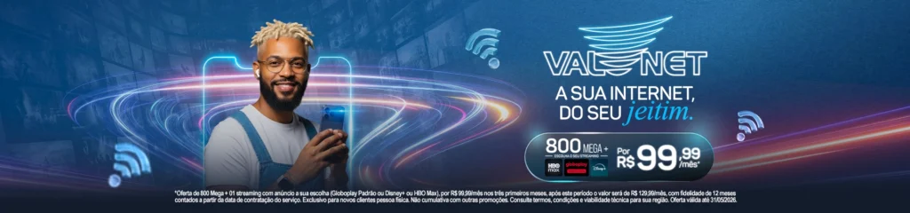 Fundada em 1998, a Valenet cresceu aliando a melhor experiência e a melhor conexão a planos personalizados, tendo ainda como diferencial o alto padrão de atendimento ao cliente.